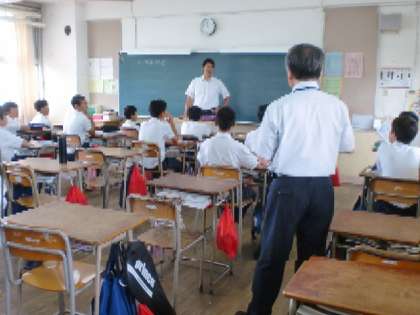 保健体育科の「体の発育と発達」保健の公開授業を、菊永先生が行いました。教育センターからはOJTの指導員の先生も来てくださいました。
