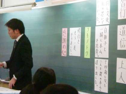 本日、教育センター主催の年次研修会「道徳の研究授業」を、6時間目、3年3組で、行いました。3組の生徒の皆さんは真剣な中にも和やかな雰囲気で蒲地先生の授業に参加していました。担任の先生とクラスの生徒の皆との一体感のある授業でした。道徳の授業を参観している先生も、元気をもらいました。「人は皆、自分自身と向き合って生きていかねばならないのだ。」の言葉が心に残りました。先輩の先生方の前で授業された蒲地先生お疲れ様でした。また、お忙しい中、研修に来ていただきました先生方、ご指導をいただきました宮脇先生、お世話頂きました安藤指導主事様ありがとうございました。