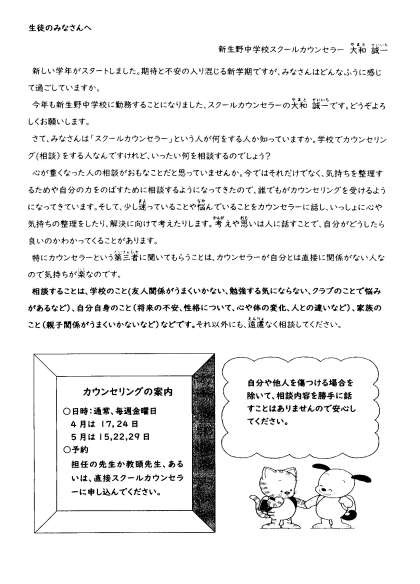 スクールカウンセラーだより 4月号