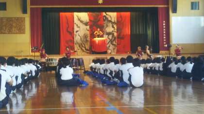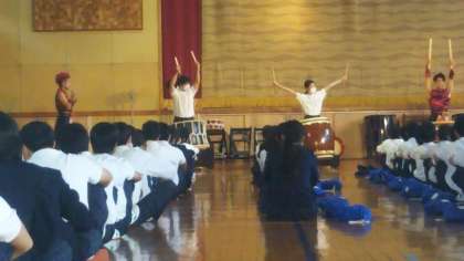 日本の伝統楽器である和太鼓、篠笛、三味線などの演奏を鑑賞しました。