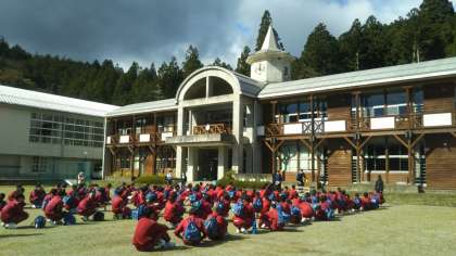 最初の目的地。西和良小学校跡に到着しました。これから昼食です。