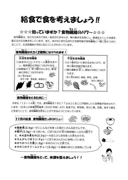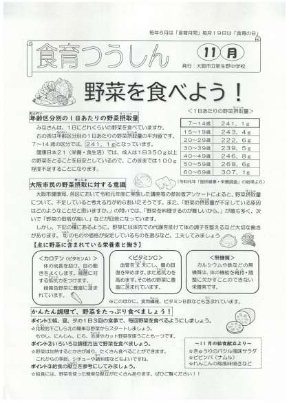 今月は、「野菜を食べよう!」 「食物繊維のパワー」です。