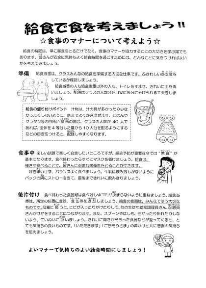 ※コロナウイルス感染症拡大防止のため、給食は黙食で!!