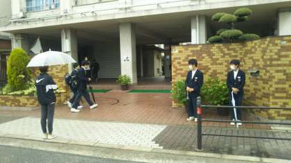 今朝は、生徒会によるあいさつ運動と1年学年集会がありました。