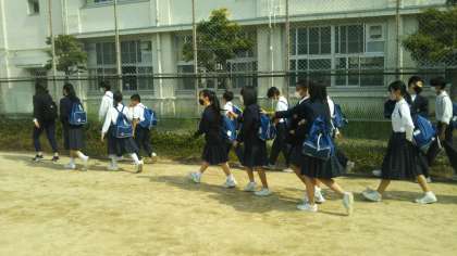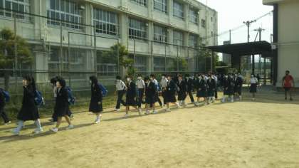 大阪城公園に向けて先程、予定通り学校を出発しました。