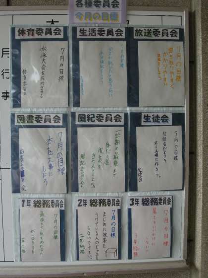 新生野中学校では、よりよい学校生活を創造することを目的に、生徒会活動を行っています。各専門委員会が、毎月目標を決め、活動しています。