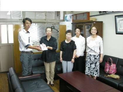 PTA会長様への目録贈呈の様子です。