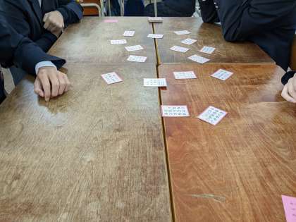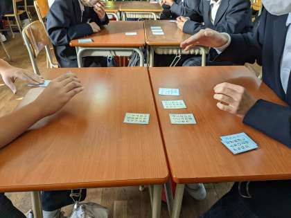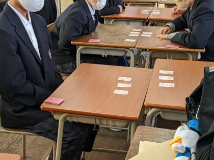 1時間目、1・2年生は百人一首大会の練習をしました。