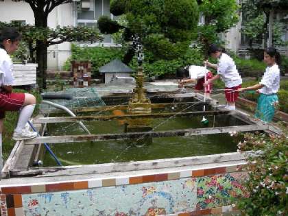 生徒会執行部の皆さんが、中庭の池の清掃を行ってくれました。