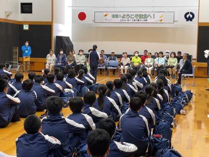 離村式のようすです。代表生徒による司会進行とお礼の挨拶がありました。