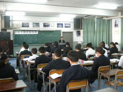 (画像左)1年2組の音楽の様子です。