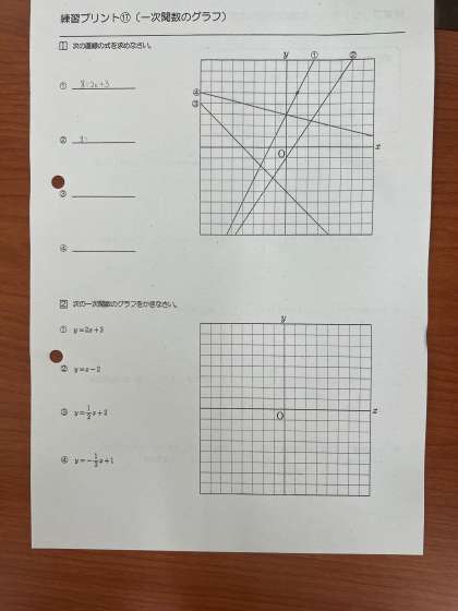 本日の授業は、一次関数のグラフの式を求めたり式からグラフを書いたりしていました。