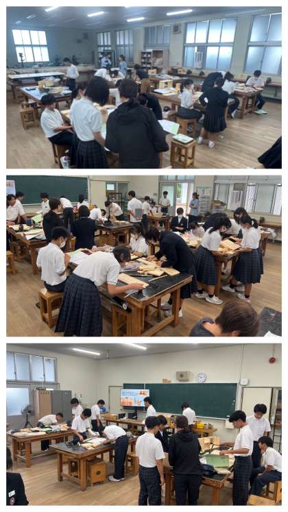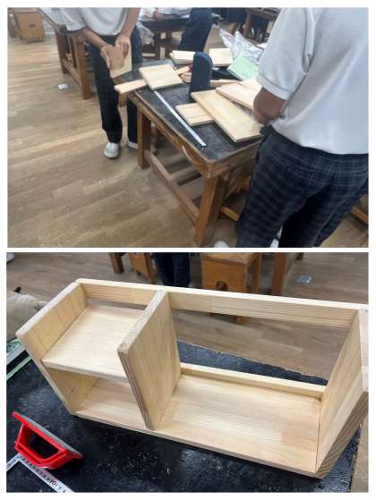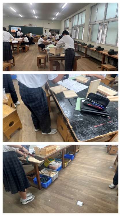 1年2組は、技術の時間で木材作品制作に取り組んでいました。