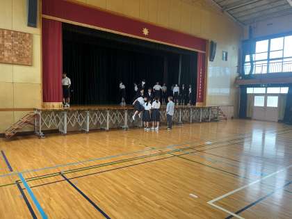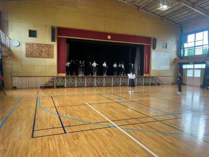 朝早くから今日の予行のために2年生のダンスチームが体育館で練習をしていました。