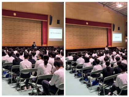 3年生の生徒会長からのあいさつと副会長から展示見学の注意がありました。