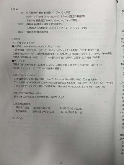 持ち物のご確認、ご準備のほどよろしくお願いいたします。
