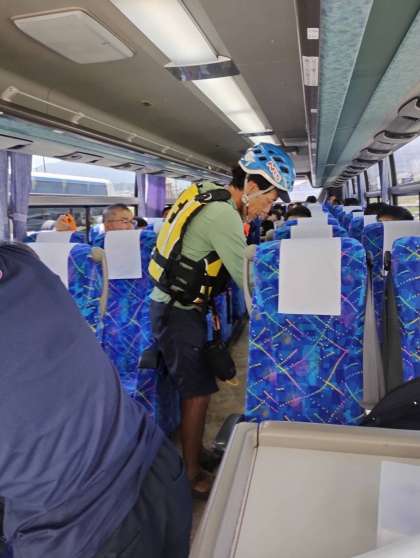 13時頃にバスに乗ってラフティングの講習を受けました。