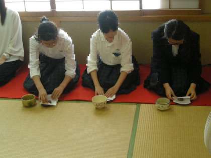 茶道の作法を勉強しました。お茶とお菓子をいただきました。