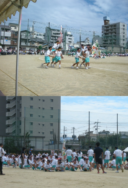 3年団体競技の「おさるのかごや頂上アタックリレー」の様子です。