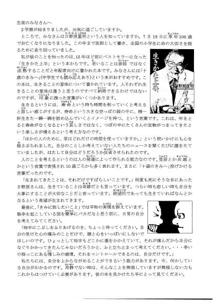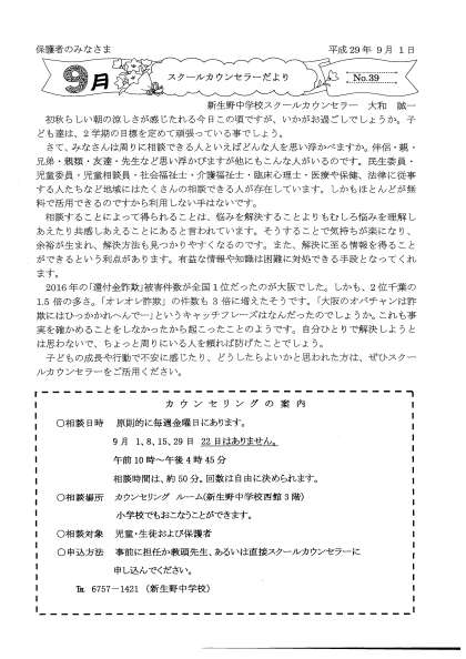 スクールカウンセラーだより9月
