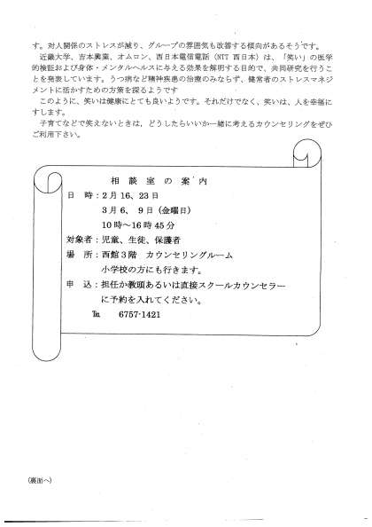 スクールカウンセラーだより2月