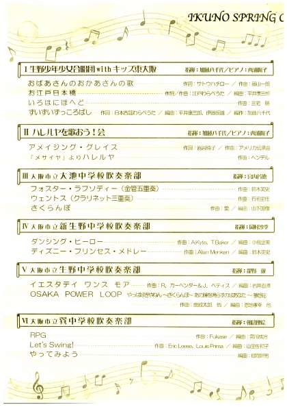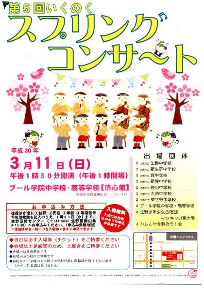 3月11日(日)生野区役所主催の「スプリングコンサート」が、おこなわれました。新生野中学校の吹奏楽部も素敵な演奏をしてくれました。