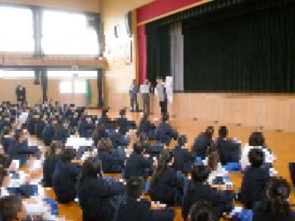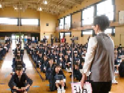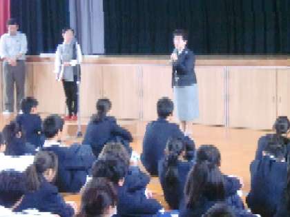 外部指導員・学校図書館補助員の方の紹介をしました。茶道部(国際クラブ)の指導を9年間していただいています 高原先生。3年目になりますが、学校図書館補助員の都先生のご紹介をしました。他にもたくさんの方が学校に関わっていただいています。学校に関わっていただいている方々に感謝したいと思います。いつもありがとうございます。