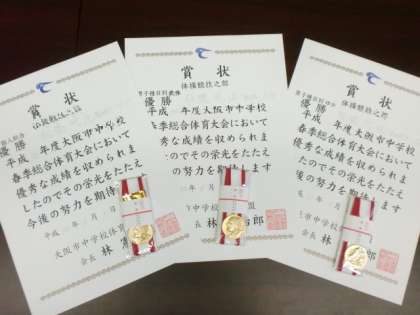 体操で、個人総合優勝をいただきました。他に種目別でゆか・鉄棒で優勝をいただきました。