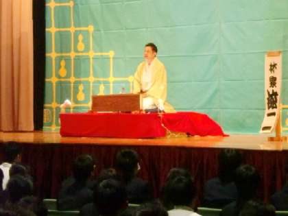 芸術鑑賞会がありました。古典伝統芸能として落語を聞きました。一人で何役もされ、扇子や手ぬぐいでお箸、舟をこぐ仕草など想像力を掻き立てられました。寄席囃子では、三味線・大太鼓・締め太鼓・笛などの邦楽を聴くことが出来、日本の楽器が作り出す音も素敵でした。太神楽のの曲芸には、はらはらどきどきしながら熱演に見入っていました。林家染二様、桂福丸様、林家花丸様、豊来家一輝様、寄席囃子の皆様ありがとうございました。