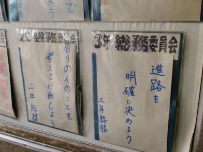 3年生は、8日・9日と実力テストがあり、進路に向けて具体的な目標ができました。