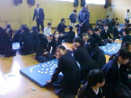 「ドドーン・ドーン」太鼓の音と共に、札が詠まれ、元気いっぱいに取り合いました。静寂と歓声で、風邪なんか吹き飛ばしてしまうような、1年生百人一首大会でした。