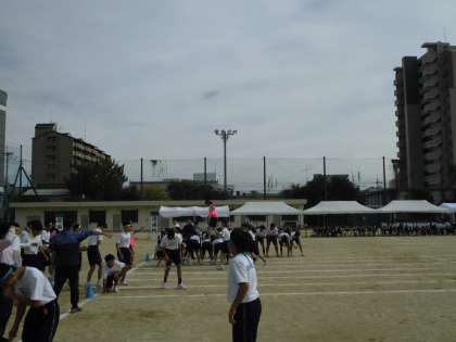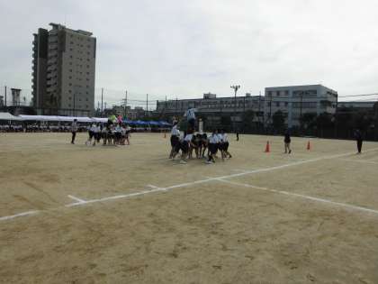 2年の学年種目は、背中の上を歩いて進んでいく競技でした。