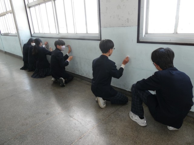 また、入学に向けて、1年生が使用する4つの教室や廊下・階段の清掃にも取り組み、校内をきれいに整えました。