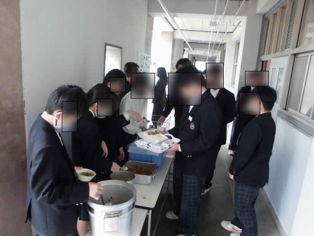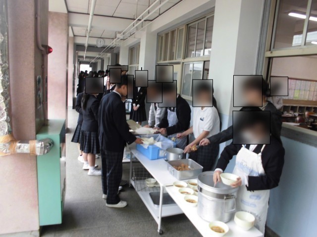 今日は2年生の給食の様子を紹介します。配膳では、当番の生徒たちが声をかけ合いながら、手際よく準備を進めていました。友だち同士で協力し合う姿がとても印象的でした。