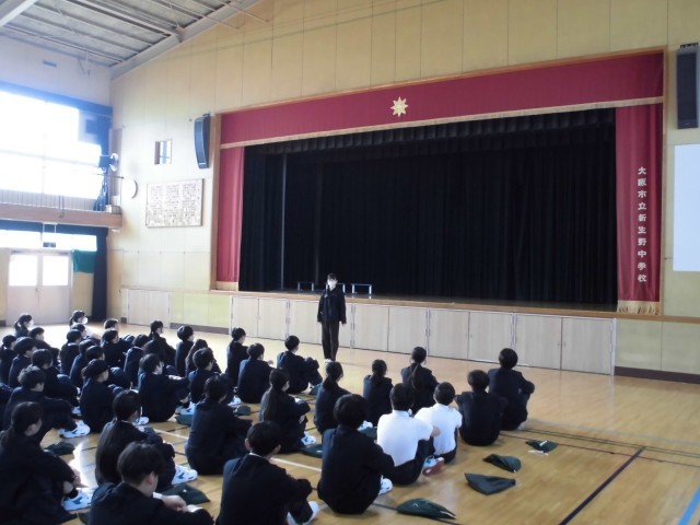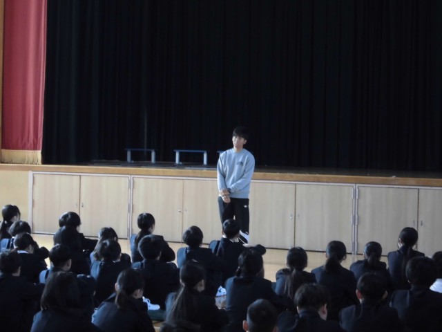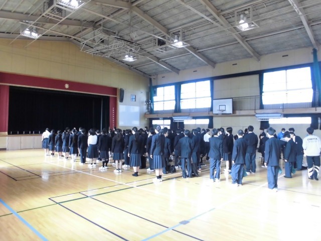 本日、1年生の定例学年集会を行いました。