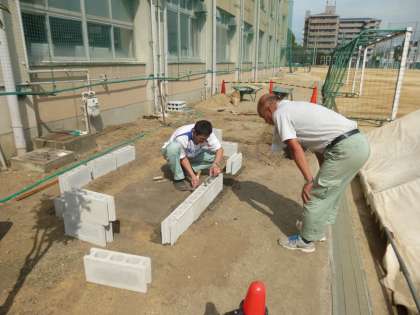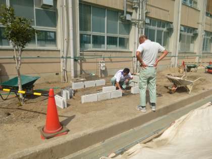 中庭に花壇作成中!