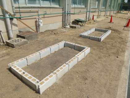 中庭の花壇作りはいろいろと作業がある中で時間を作って、少しずつ作業が進展しています♪