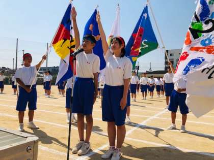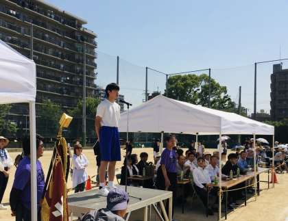 青空に響き渡るよい選手宣誓でした。「最後はみんな笑って」とありました。