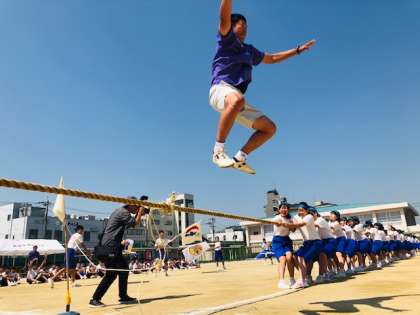 三年の円陣、勝利の喜び、お決まりの大ジャンプも決まりました!