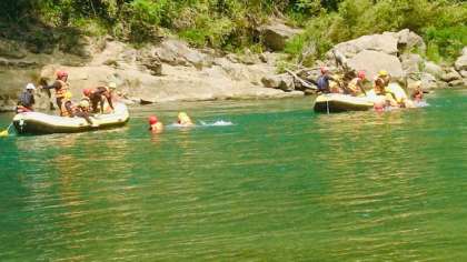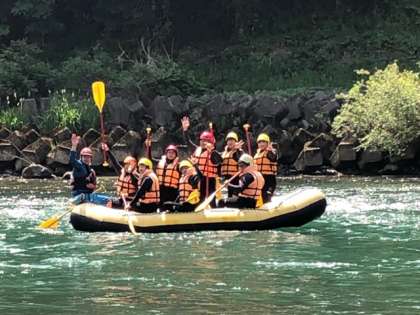 大迫力の川下りと、流れの緩やかなところでは色んなゲームを行っています!乗るのも落ちるのも楽しそうです!