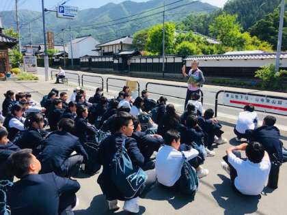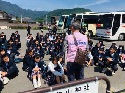 松代大本営最寄りの駐車場で現地ボランティアの方と合流しました。今から沖縄戦や日本終戦までの歴史に大きく関係のある壕へ向かいます。この壕が何のために、どんな人が、どんな思いでつくられたのか。目には見えない「思い」をくみ取って実際に見てほしいです。暑い中ですが、正装をしている姿が印象的です。この時間を大切にするんだという3年生の思いが伝わってきました。聞き、見て、体感してきてください。