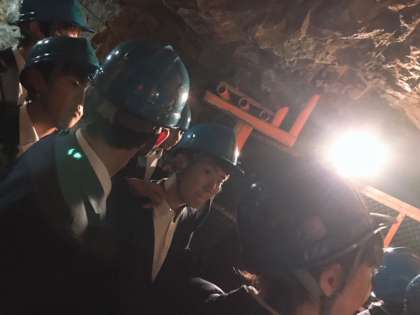 非常に硬い地盤を掘った所です。ロッドが刺さっていたり、至る所に削った跡がありました。百聞は一見に如かずとはこのこと。今の平和が当たり前でないこと、先人の創り上げた社会があることを感じているようです。