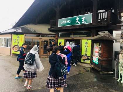 安曇野にあるわさび農園のレストランに!メニューはわさび尽くしですが、お口に合うでしょうか?お土産やわさびソフトも有名なスポットだと、ガイドブック情報にありました!短い時間ですが、楽しいひとときを。