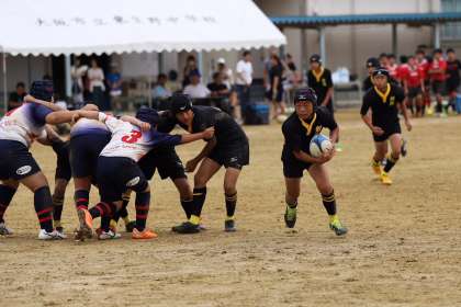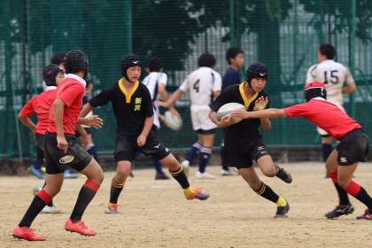 近年、小学校時代ラグビースクールに通っていた中学生が増加している中、本校ラグビー部は中学入学時からラグビーを始めた者ばかりで、大会に参加しました。
