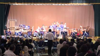 本校はコンクール自由曲「天空の騎士」と「シュガーソングとビターステップ」を演奏しました。コンクールでの成果を見ていただくのと、盛り上がって楽しむ曲を用意しました。初めての場での演奏ということもあり、会場の雰囲気を味わうには時間がかかりましたが、聴いてくださっているお客様に何か感じ取っていただける演奏になったのではないかと思います。