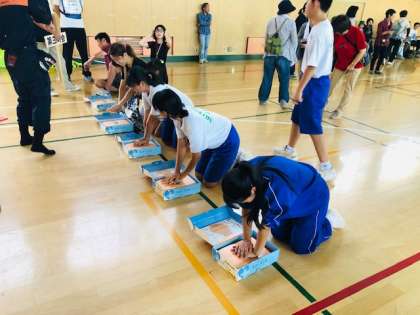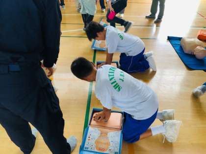 心肺蘇生法の体験です。今は人工呼吸よりも胸骨圧迫を最優先に実施するとこのと。救命方法もどんどんよりよい形で伝達されていることを感じます!