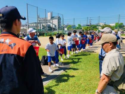 みんなでつないで消化活動。規模にもよりますが、少しでもできることをやる。一年生はワンガリマータイの学習からハチドリの一滴を学びましたが、それに通じるような体験だと感じました。「私は私に出来ることをやっているだけ」そんな心も育ってほしいです!