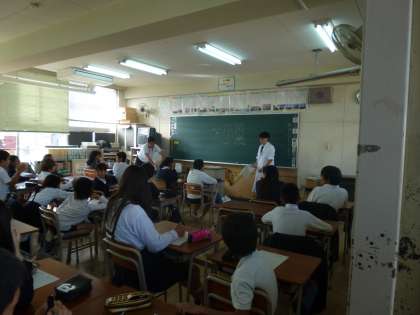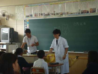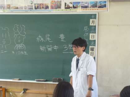 日頃は中学3年生の授業をしているので、小学生への対応に緊張しながら自己紹介をしていました。