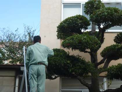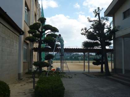 植木職人も顔負けの剪定技術を修得している管理作業員の中川 治さんのおかげで、本当に校内の樹木がさっぱりとカッコよくなりました♪