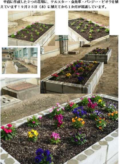 10月24日(金)の文化発表会でのお披露目を目標に行ってきた校内美化活動の一環である、花や樹木の整備が完了しました♪
